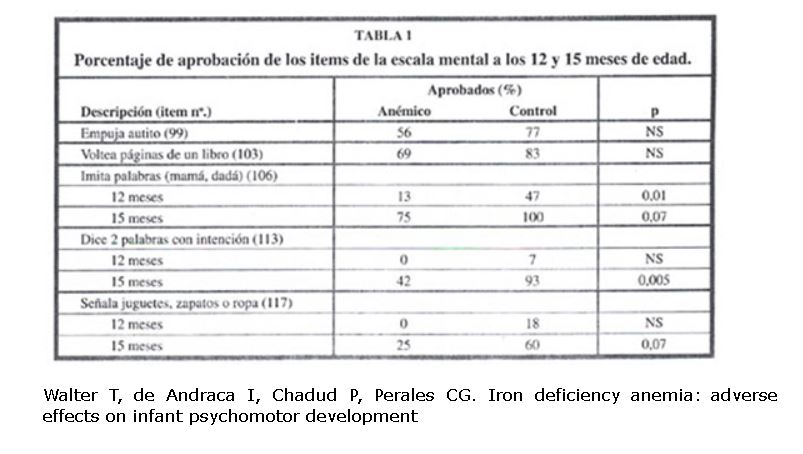 Walter T, de Andraca I, Chadud P, Perales CG. 1989. Iron deficiency anemia: adverse effects on infant psychomotor development. Pediatrics . Recuperado de : https://www.ncbi.nlm.nih.gov/pubmed/2472596