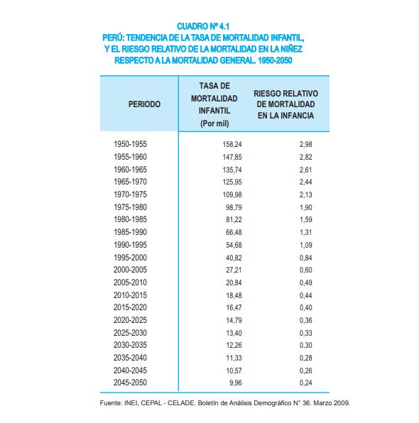 INEI, Perú: Situación y Perspectivas de la Mortalidad por Sexo y Grupos de Edad, Nacional y por Departamentos, 1990-2025, Recuperado de :http://proyectos.inei.gob.pe/web/biblioineipub/bancopub/Est/Lib0901/cap04.pdf