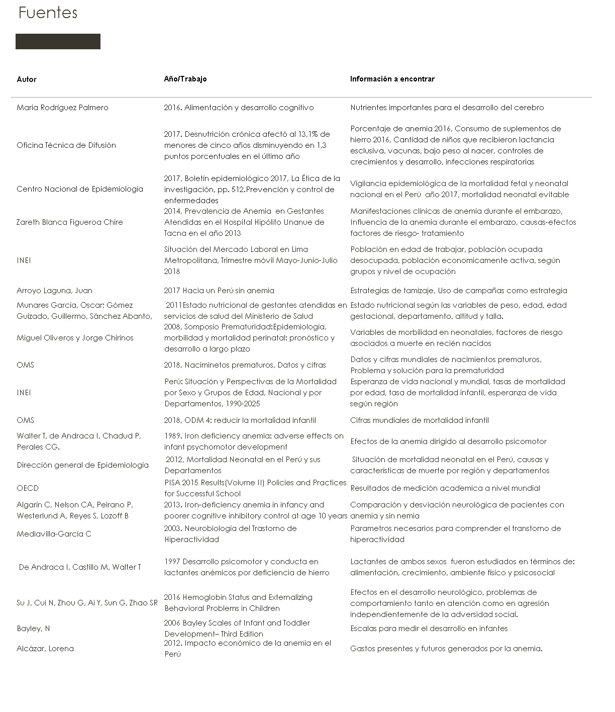 Información recuperada de las fuentes bibliográficas